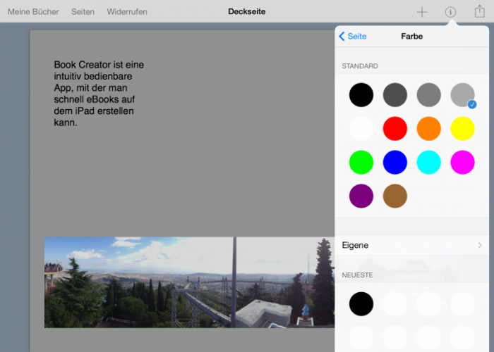 Book Creator ist eine App, die simpel in der Anwendung ist. Bisher nur englisch lokalisiert, erschloss sie sich uns doch recht schnell. Da die wenigsten Schüler einen Mac und somit kein iBook-Author zu Erstellung von eBooks haben, ist Book Creator Free eine günstige Alternative für das iPad. Bei der Free Version ist nur das Erstellen eines Buches möglich. Nach dem Export ins ebook-Format ist das Anlegen eines neuen Projektes möglich, womit die Weiterbearbeitung des bereits exportierten Buches freilich nicht mehr möglich ist. Das Bearbeiten von mehreren Projekten ist nur in der Kaufversion möglich. Im Französischunterricht haben wir die App bereits mehrfach genutzt. Denkbar ist auch eine Anwendung im Deutschunterricht, für ein Tagebuch oder die Praktikumsberichte.